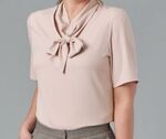 96% Polyester, 4% Elastane. Half sleeve, tie neck design, double ply front and back.